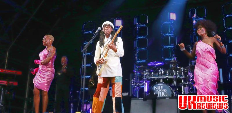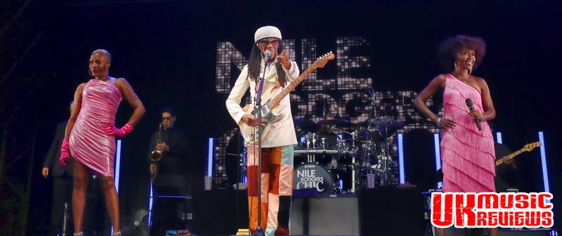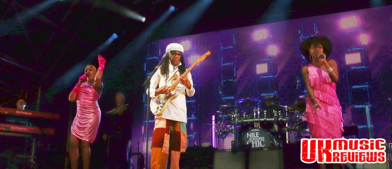 Nile Rodgers & Chic were the undisputed kings of disco in the late 70’s with their deceptively simple floor fliers that packed the dance floors in clubs across the land, and as the 71 year old Rodgers walked on to the stage ahead of his very talented band, it was immediately clear that he has lost none of his enthusiasm for his craft.
