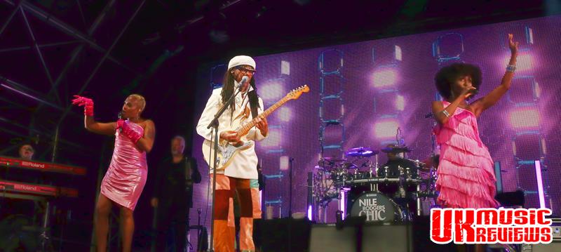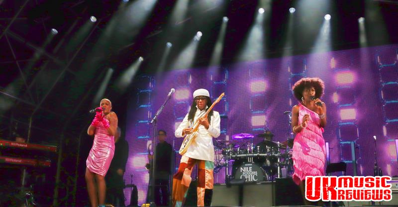 And with Nile Rodgers standing at the side of the stage with a huge smile on his face, foot tapping along to a cover of Madonna’s Like A Prayer which had been another Kitchen Disco favourite, she received his seal of approval. Always charming and fun there is nothing to dislike about Sophie Ellis-Bextor, who proved to be the perfect support act getting an already appreciative crowd ready for the headliners before she finished with the pop brilliance of Murder On The Dance Floor which had everyone dancing along.