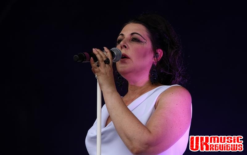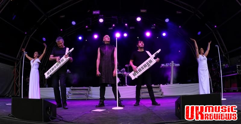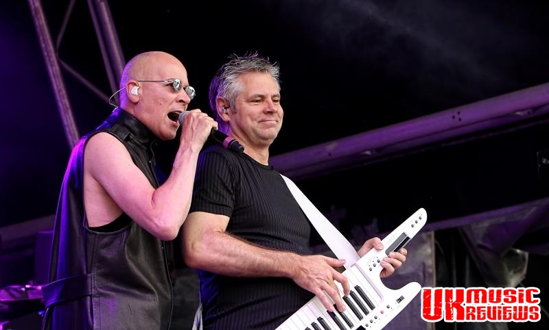 With the main stage now dressed in white, it was time for Sheffield’s 80’s giants, The Human League to take their turn at entertaining. Opening with Mirror Man, those in the audience will have immediately remembered lead singer Phil Oakey with his hair drooping over one eye, yet still looking remarkably cool.