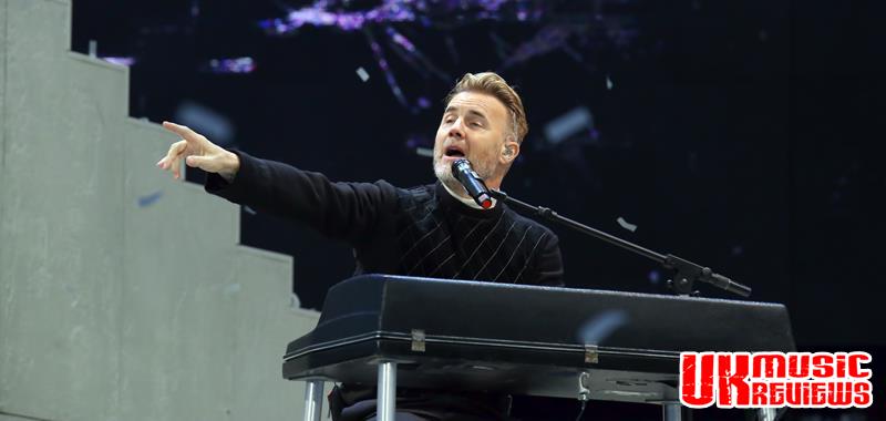 During Shine, an early joyous highlight, a huge waterfall sprang from the front of the stage whilst A Million Love Songs saw Barlow at a piano that had risen from below the stage and which had the crowd singing along.
